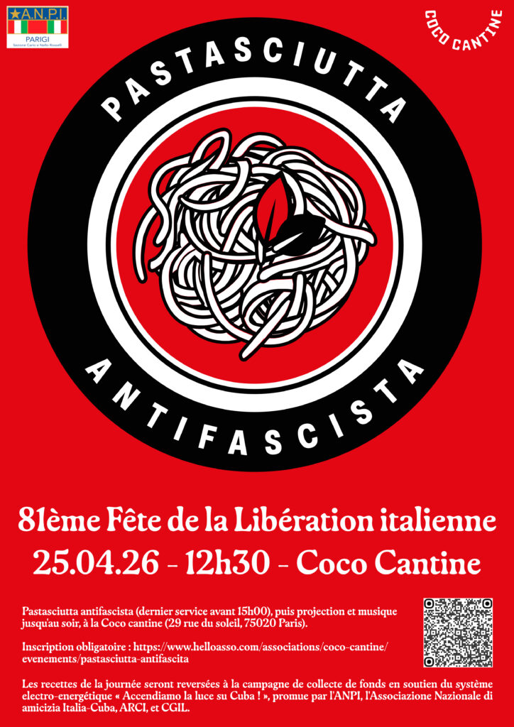 Inscription obligatoire : https://www.helloasso.com/associations/coco-cantine/ evenements/pastasciutta-antifascita